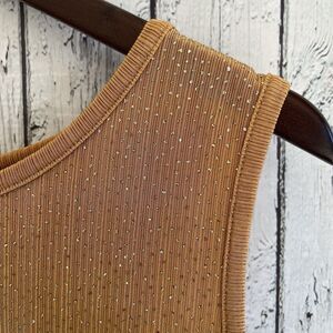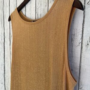 Maggie Barnes Womens Gold Sparkle Ribbed Tank Top Size 1X Glamorous Party Event