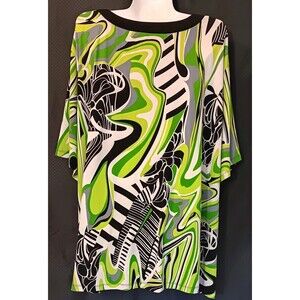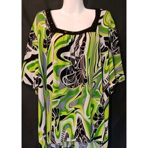 Maggie Barnes Women's Green/Black/White Beaded Square Neck Tunic Blouse, 4X