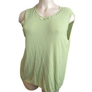 Maggie Barnes Womens Plus Size 3X Sleeveless Green Knit Top Cut-Out Neck JJ4086