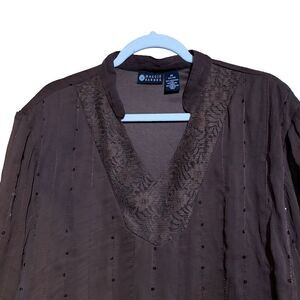 Maggie Barnes Womens Size 2X 22 24 Brown Sequin Embellished Tunic Top Blouse