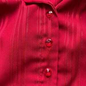 This stylish red blouse features a subtle stripe pattern, offering a vibrant touch to any wardrobe. Ideal for a polished and sophisticated look., Business, Festive, Valentines, Metallic Thread, very good condition, Material Polyester, Spandex