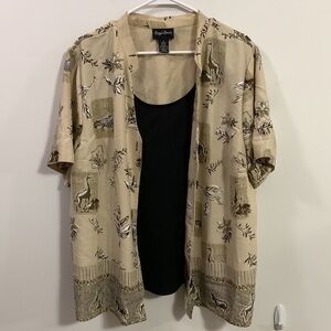 Maggie Barnes wildlife short sleeve w faux tank in front, Sz 1X 18/20 good cond