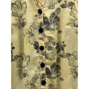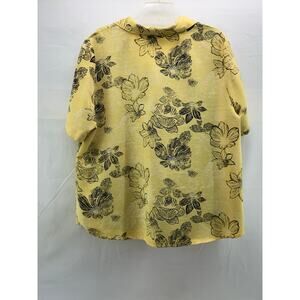 Vintage Maggie Barnes women’s 1X yellow floral button up blouse with black tank top attached. See pictures and measurements as part of description