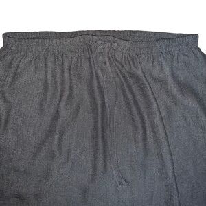 Army green plus size long skirt. Elastic waistband. Tie at waist. Fringe hem. Back hem slit. 100% polyester. Size: 24W. Preowned in good condition.