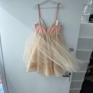 Maggie Barry peach and tan Tulle mini dress, no size