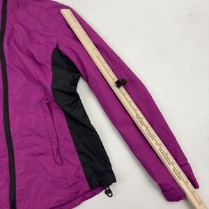 Maggie Lane Purple Black Packable Rain Jacket XS L/S Compact Wind/Water Resist