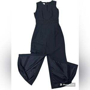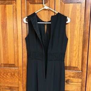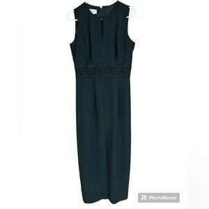 Maggie London Black Sleeveless Maxi Dress Split Mid Seams Front & Back Neck S4
