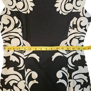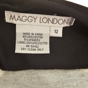Elegant Maggie London Black and Creme print fitted dress features a side zipper. This dress is a size 12 and is in perfect condition