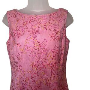 Maggie London Pink Floral Linen Blend Sleeveless Sheath Dress Size 6