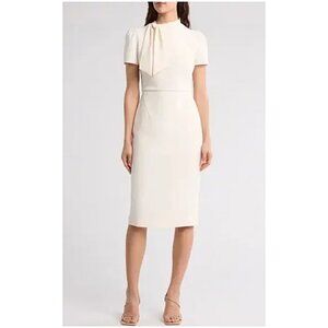 Maggie London Tie Neck Puff Sleeve Scuba Crepe Dress NWT in Sugar Swizzle Color