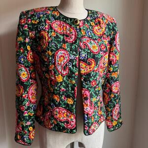 Maggie London Vintage Silk Quilted Paisley Floral Cropped Jacket Sz 6