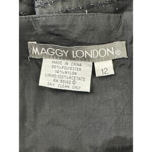 Maggie London Women's Cocktail Dress Black Stripes & Glitter Velvet Spaghetti Straps Midi A-Line Belt Loops No belt Back Zipper Fully Lined Sz 12