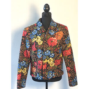 Elevate your wardrobe with the Maggie London Quilted Crop Jacket, a versatile and stylish addition that promises to be a standout piece. Crafted from 100% silk, this jacket boasts a luxurious feel and a vibrant floral pattern that effortlessly captures the essence of a London-inspired theme. The short jacket/coat length paired with a collared design and lightweight fabric makes it an ideal choice for various occasions, from casual outings to business meetings or even cocktail parties. Size 10 ensures a regular fit for those who appreciate both comfort and elegance. The quilted style of this jacket adds a touch of sophistication, while the multicolor palette allows for easy pairing with a multitude of outfits. Whether you're looking to make a statement at an evening event or seeking a sophisticated layer for day-to-day wear, this Maggy London jacket is an exquisite selection for the fashion-conscious woman. Please view all pics carefully and let me know if you have any questions. All items come from a smoke and pet free home.
