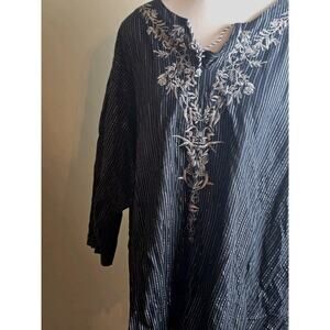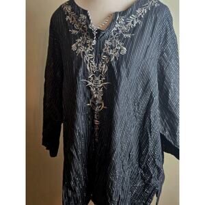 Maggie & Max Black Embroidered Striped Metallic 3/4 Sleeve Top Women's Size 3X