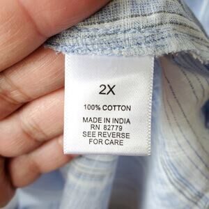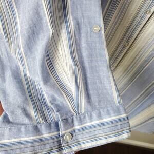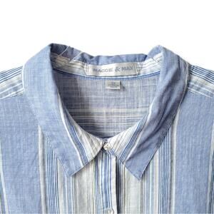 Maggie & Max Chambray Stripe Shirt Top 2X Cotton Breezy Casual Classic Coastal