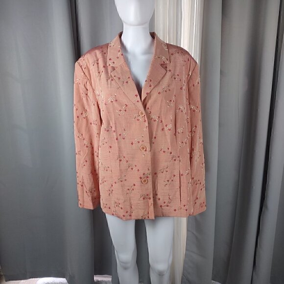 Maggie McNaughton Peach Pink Floral Flower Button Up Blazer, Jacket. Size 22W