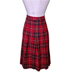Maggie McNaughton Vintage Wool Blend Red Plaid Preppy Pleated Skirt Sz 22W
