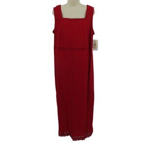 Maggie McNaughton Women Plus Size 2X Red Linen Blend Crochet Long Dress NEW NWT