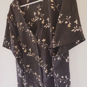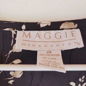 Maggie McNaughton Womens Top Size 2X Black Floral Print Button Up Short Sleeve