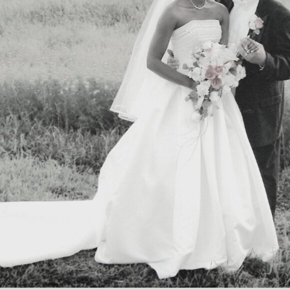 This Maggie Soterro Wedding Gown has been beautifully maintained. She is free from any mothball or musty home odors, having been stored in a well-ventilated, climate-controlled space. Tulle skirt is included. Don’t miss the opportunity to make your special day unforgettable by securing this elegant, princess of gowns today.