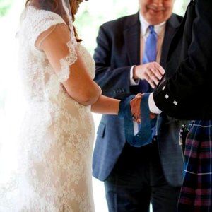 Who doesn't love their wedding dress?! I babied this thing even after wearing it only once. I was lucky to not need any alterations and didn't leave with any tears! It does bustle nicely. I also have a handmade lace-trimmed Mantilla veil (about fingertip length) that I'll include if you need one. Non-smoking family.