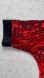 Elegant vintage kimono jacket featuring a striking red floral burnout pattern against a black background. The jacket has a comfortable, open-front design with a V-neckline framed by smooth black velvet, which also accents the cuffs. The rich texture and vibrant color make it a statement piece. Perfect for adding a touch of glamour to an evening out, dressing up a casual outfit, or making a bold fashion statement at a special event.