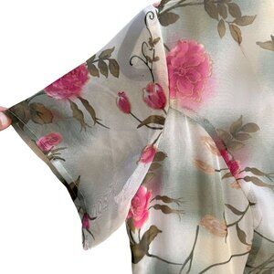 Maggie Sweet Vintage Womens Floral Chiffon V-Neck Short Sleeve Midi Dress PS