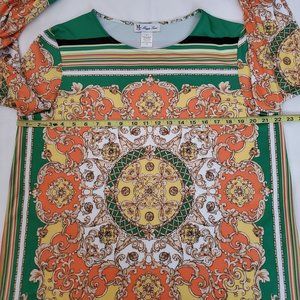 Maggie Sweet Women's Multicolor Medallion Print Long Sleeve Tunic Top Size Large