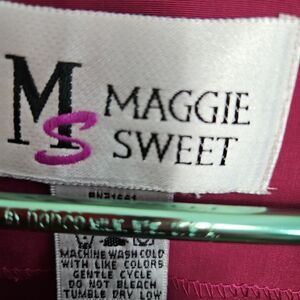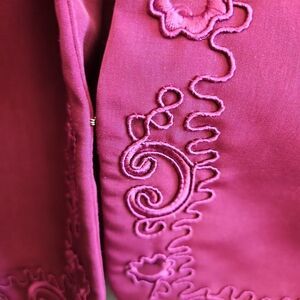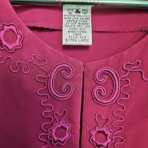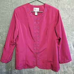 Maggie Sweet Women's burgandy XL Jacket hook loop closure embroidery shoulder padding This is not a deep burgandy but maybe light burgandy rasberry If hooked would need to wear a blouse or top underneath