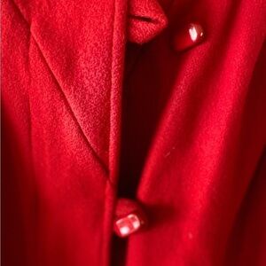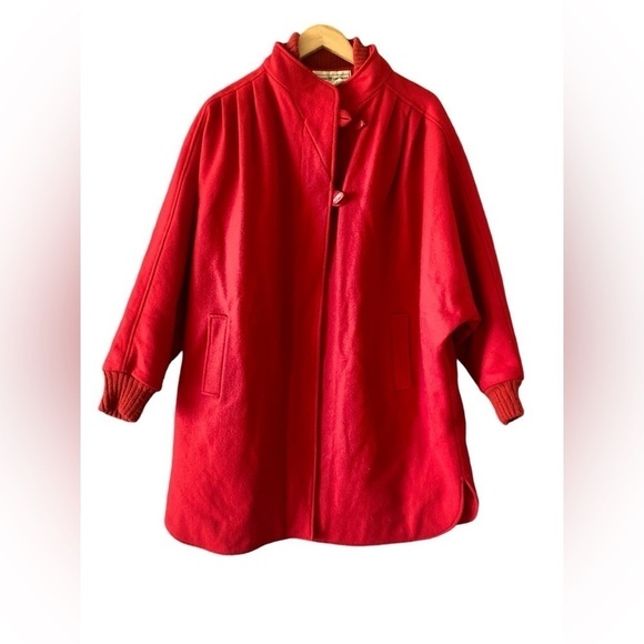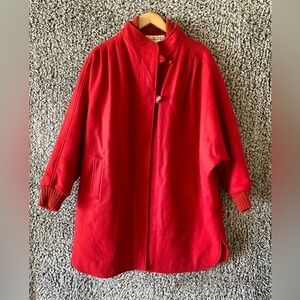Maggie T Womens Coat Size M Red Wool Boucle Swing High Neck Long Sleeve Made in USA