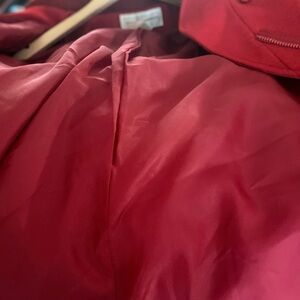 Maggie T Womens Coat Size M Red Wool Boucle Swing High Neck Long Sleeve