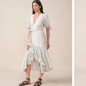Maggie The Label 100% Linen Stevie Ruffled Wrap Dress Mint Grey Australia