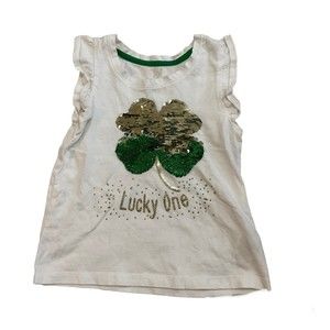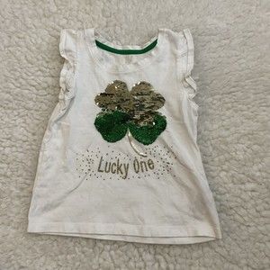 Maggie & Zoe Girls 4 Four Leaf clover White Flutter Sleeve Top size 4 US (au 7). St Patrick’s day