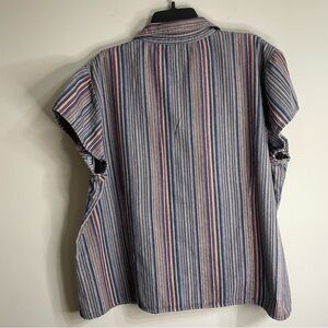 Stylish Maggie & Max shirt with a classic button-up design. Features multicolor stripes for a vibrant look. Perfect for casual wear. EUC