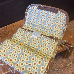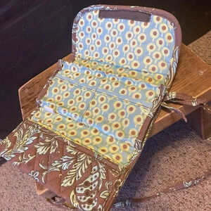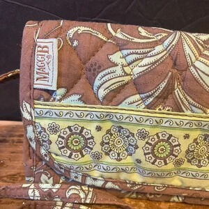 MaggieB Mini Crossbody Strap Wallet Quilted Floral Print Brown Green
