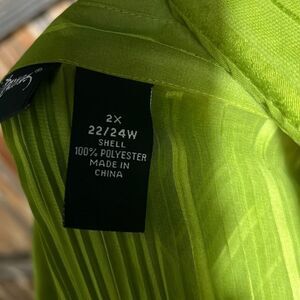 Maggie Barnes woman blouse top green pleated semi-sheer plus 2X FIRM on PRICE