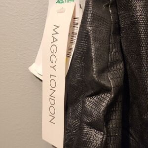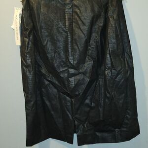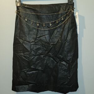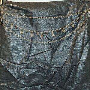 mock suede black animal embossed skirt fully lined with zippered back and removal chain accent belt