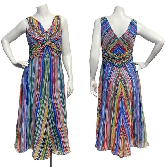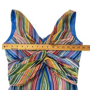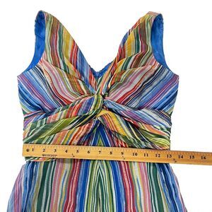 Maggy Boutique Sz 4 Waterfall Stripe Twist Front Midi Flare Dress Summer Rainbow