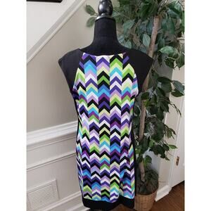 Maggy L Fit & Flare Dress Womens Size 10 Multicolor Casual Round Neck Sleeveless