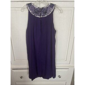 Maggy London 10 100% Silk Dress Sleeveless Sequin Neckline Purple Lined