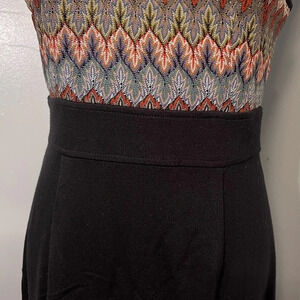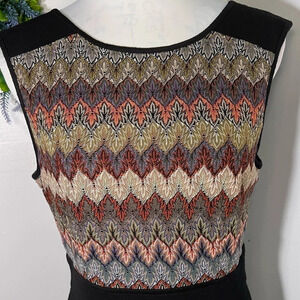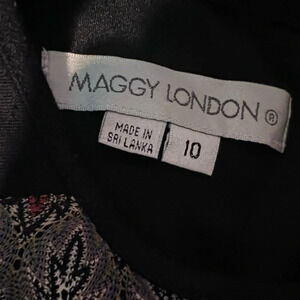 Maggy London, 10, black sleeveless metallic embroidered geometric torso print