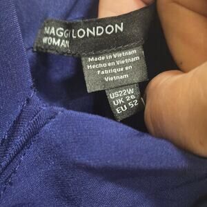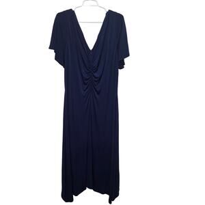 Maggy London 22W Navy Blue Ruched V-Neck Midi Dress