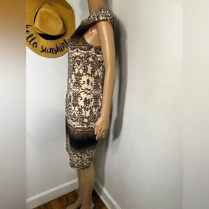 Maggy London 8, sleeveless midi dress geometric pattern, fully lined, side zip.