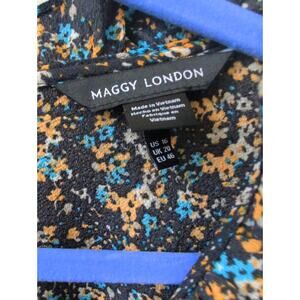 Elegant Maggy London faux wrap dress in a beautiful black floral print. This dress is in great condition and ready to wear! Size 16.