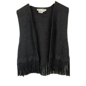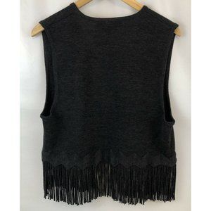 Maggy London Black Fringe Knit Vest Sweater SZ Sm