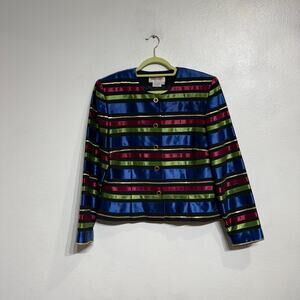 Maggy London Black Metallic Striped Vintage Blazer Sz 14