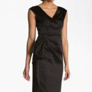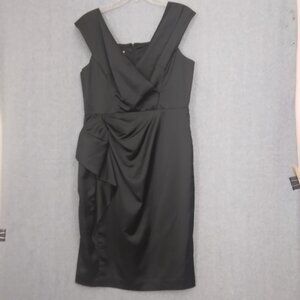 Maggy London | Black Satin Cocktail Side Bustled Dress Sz 16