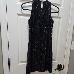 Maggy London Black Sequin Sleeveless Cocktail Dress Size 2