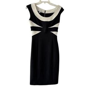Maggy London Black White Sheath Dress Size 4 Colorblock Sleeveless