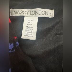 New with tag dress by Maggy London features a striking black and red color palette, perfect for a cocktail night out or wedding guest. Its midi length ensures a refined and stylish appearance for any occasion.